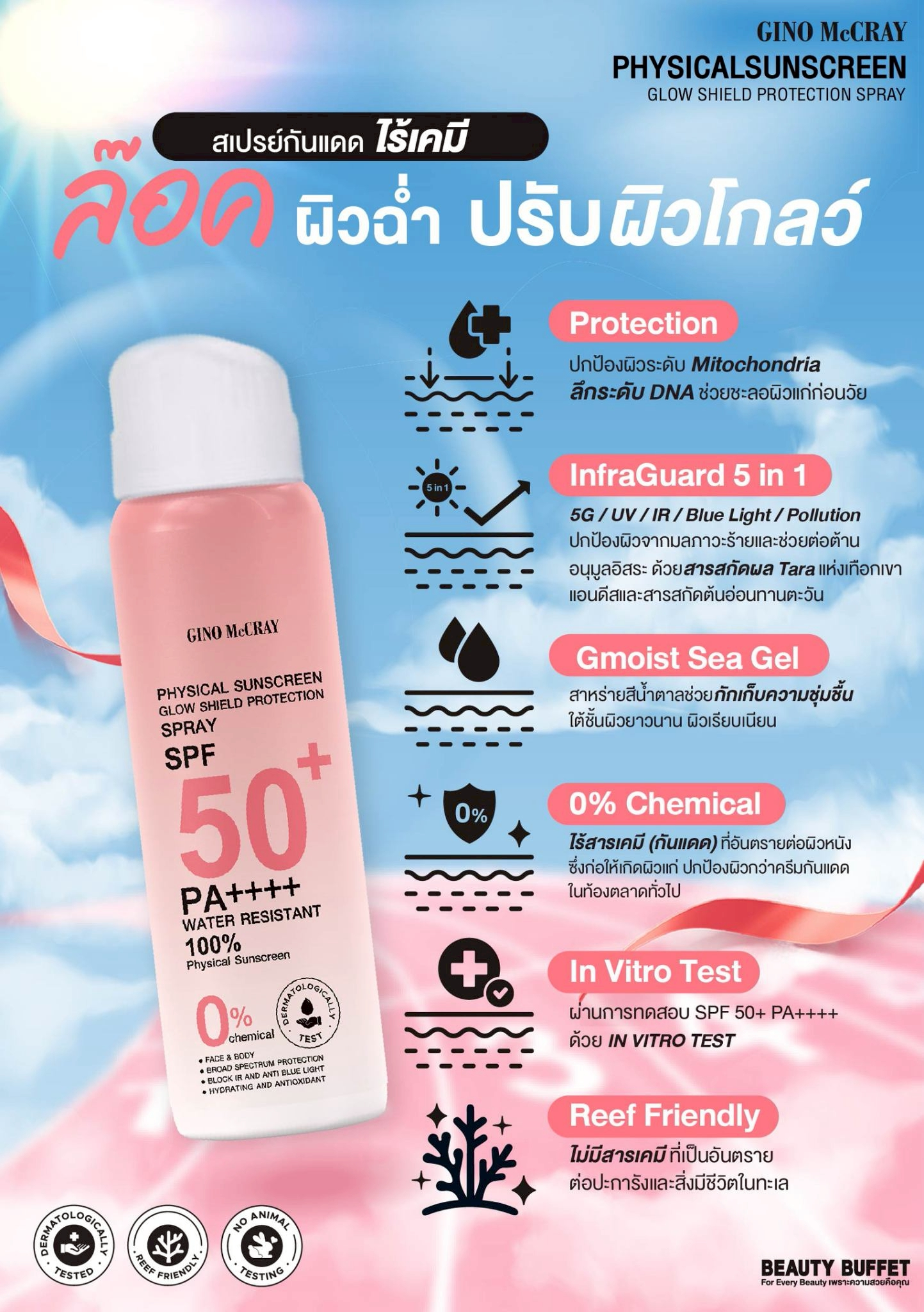จีโน่ แม็คเครย์ ฟิซิคอล ซันสกรีน โกลว์ ชิลด์ โพรเทคชั่น สเปรย์เอสพีเอฟ50+พีเอ++++